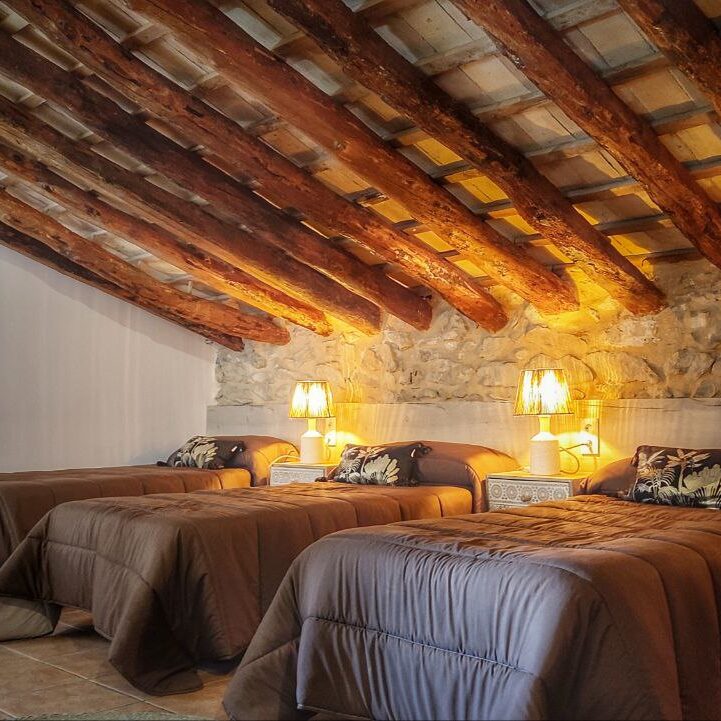 Buhardilla a dos alturas, compuesta por 5 camas individuales de 90cm y un sofá cama doble.