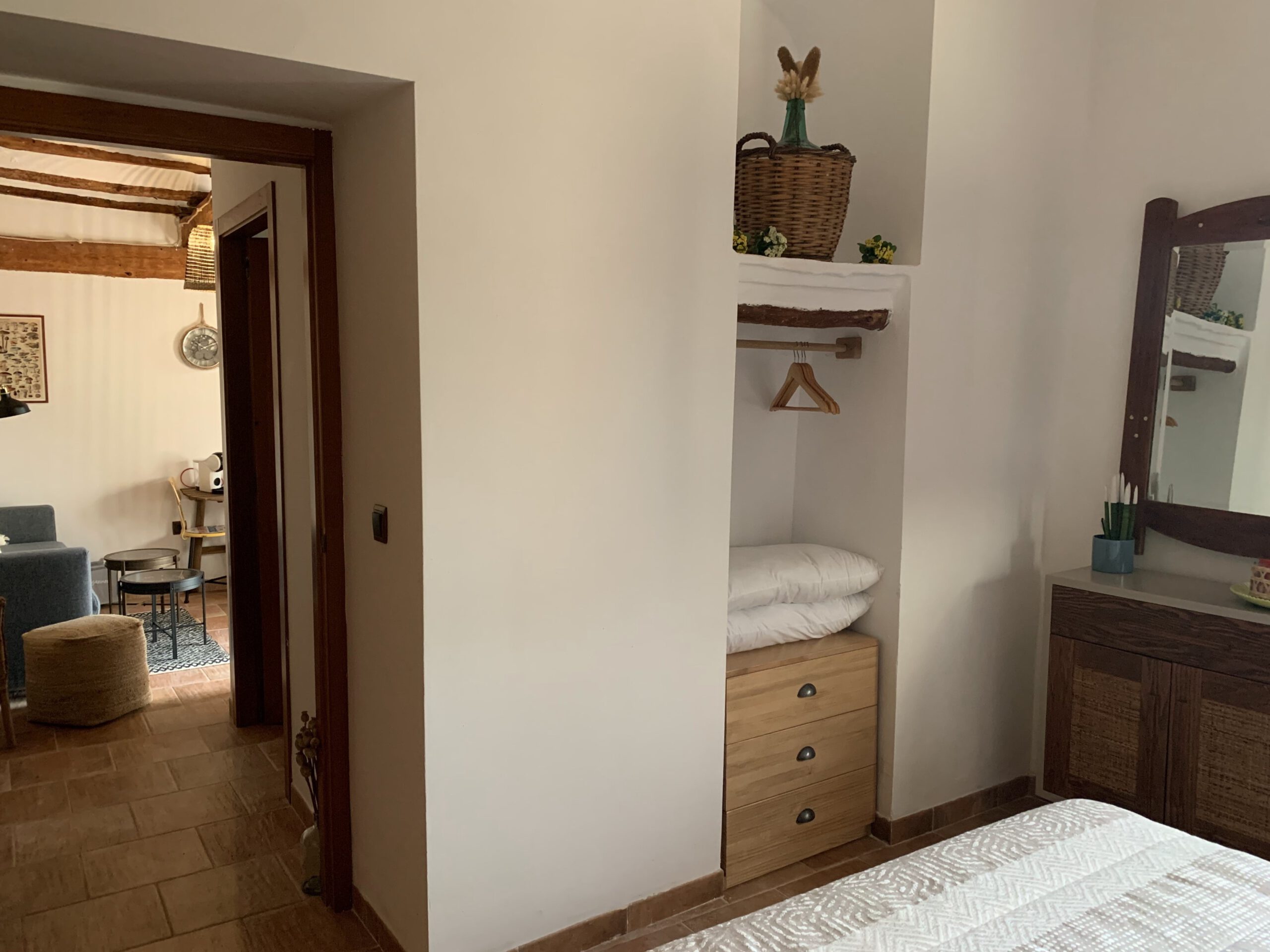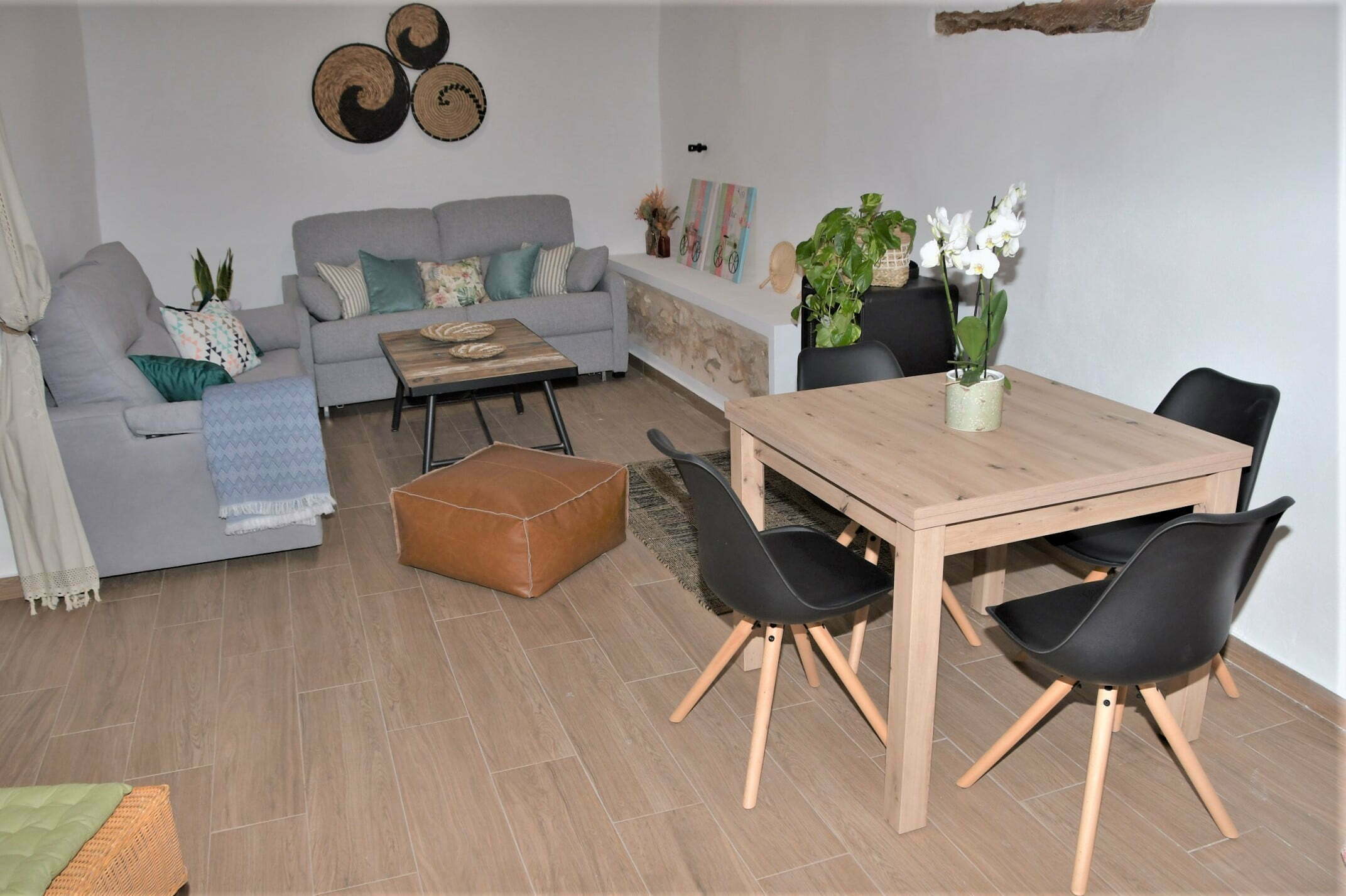 Apartamento boutique compuesto por 1 dormitorio con cama de matrimonio de 150 cms, sofá cama doble, baño privado y cocina completa con todo el menaje y electrodomésticos necesarios. El apartamento tiene unos 70 metros cuadrados con entrada privada.